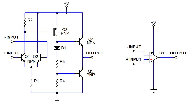 運算放大器的電路結構和參數解析運算放大器電路結構典型運算放大器的內部原理圖如下所示:帶(-)號的端子稱為反相輸入端,帶(+)號的端子